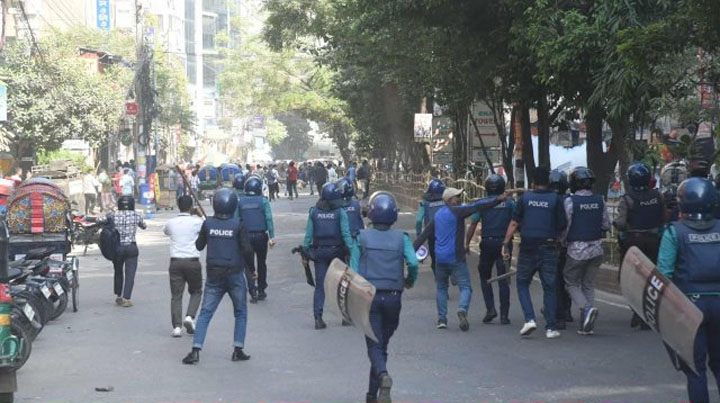রাজধানীর ধানমন্ডি ৩২ নম্বরে পুলিশের সঙ্গে উপস্থিত জনতার ধাওয়া পাল্টা ধাওয়া শুরু ...