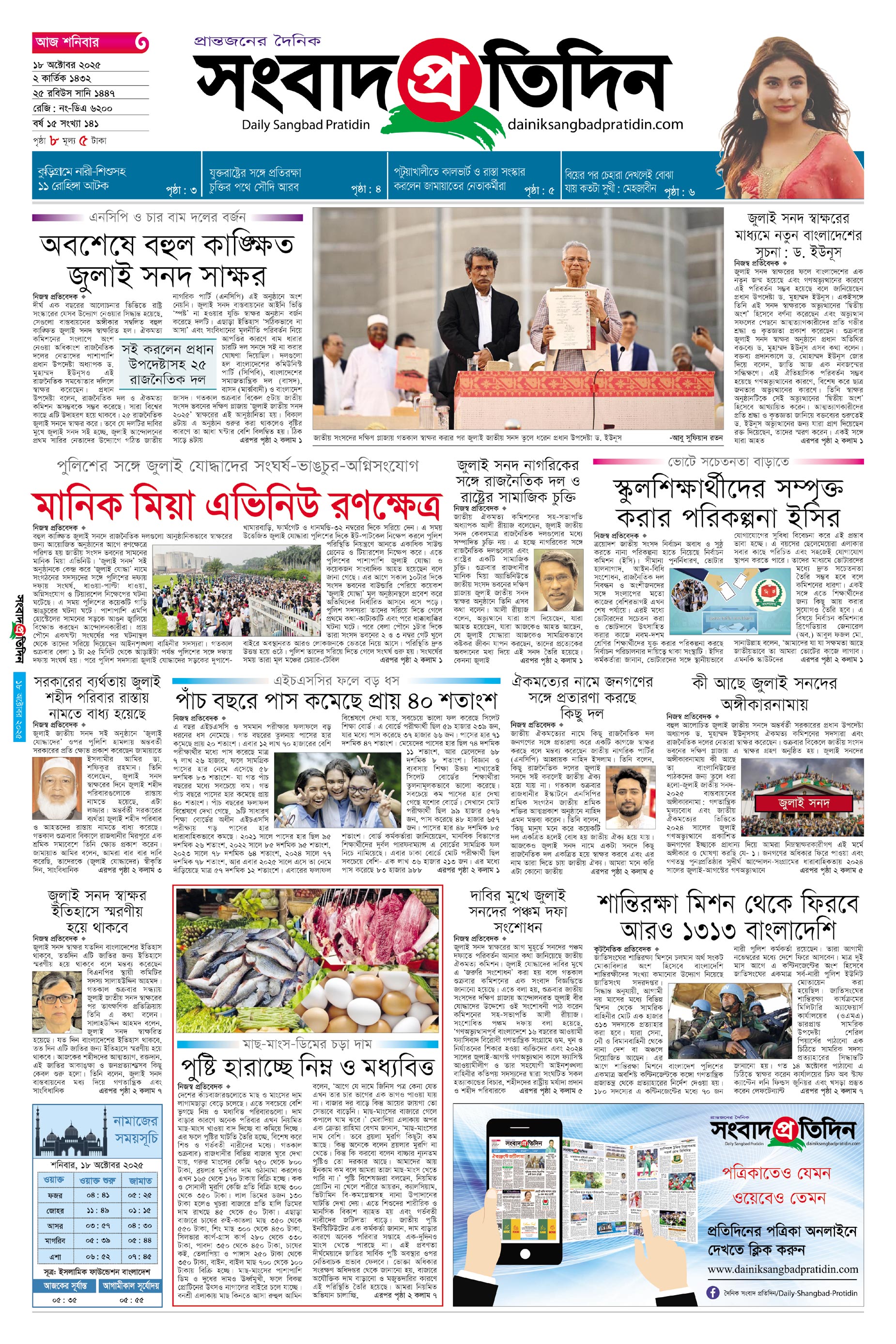 Daily Sangbad Pratidin is one of the popular Daily Newspaper in the Bangladesh. We provide latest news about various categories for 24/7 days.