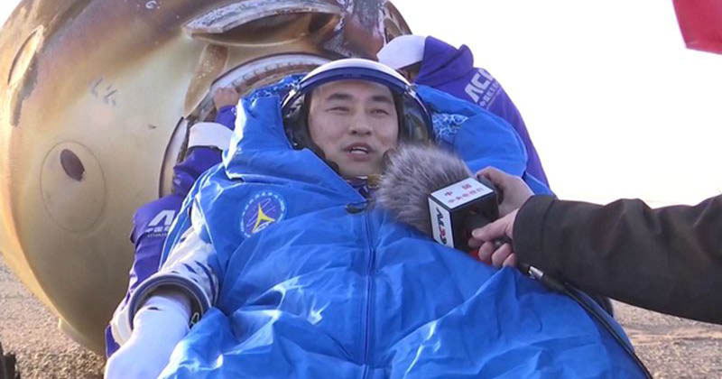 চীনের শেনচৌ-২১ মহাকাশযানের রিটার্ন ক্যাপসুল থেকে বের হয়ে শেনচৌ-২০ মিশনের কমান্ডার ছেন ...