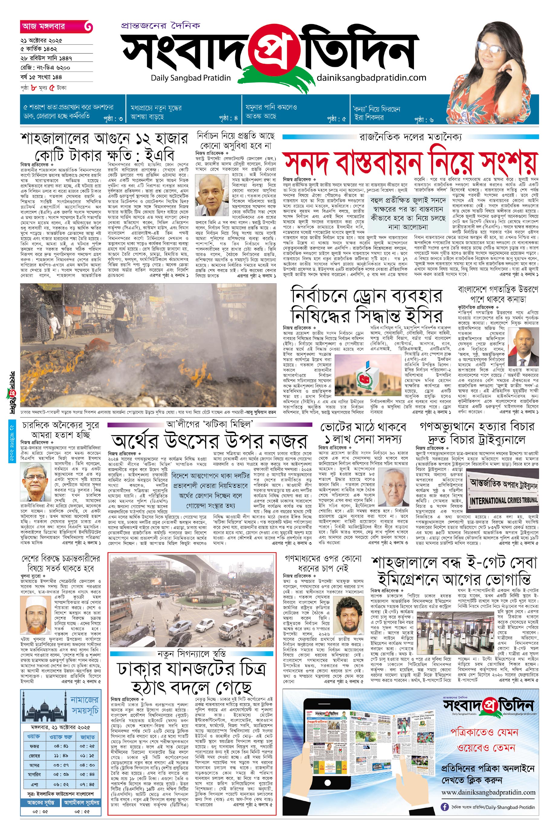Daily Sangbad Pratidin is one of the popular Daily Newspaper in the Bangladesh. We provide latest news about various categories for 24/7 days.