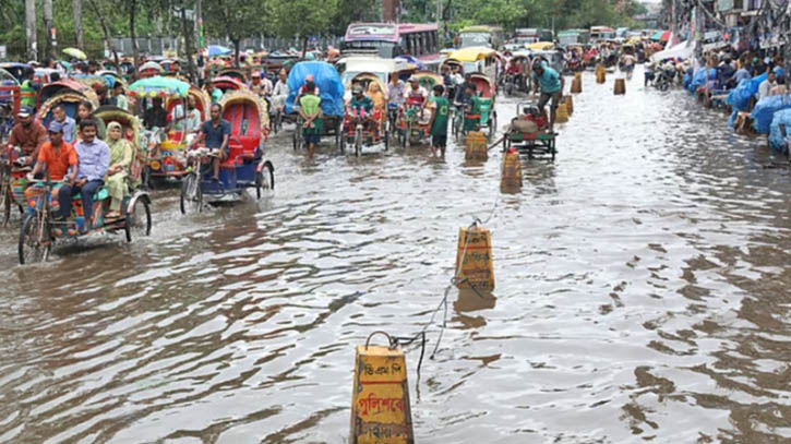 সরেজমিনে দেখা গেছে, রাতভর টানা বৃষ্টিতে জলমগ্ন হয়েছে রাজধানীর বিভিন্ন এলাকা। কোথাও হাঁটুপানি, কোথাও বাস-রিকশা আটকে পড়েছে মাঝরাস্তায়। পায়ে হেঁটে পানি পেরিয়ে নগরবাসীকে যেতে হচ্ছে গন্তব্যে। অনেকে দোকানের ভেতর থেকে সেচ দিয়ে পানি বের করছেন। টানা বৃষ্টিতে সড়কগুলোতে রয়েছে দুর্ভোগের চিত্র।