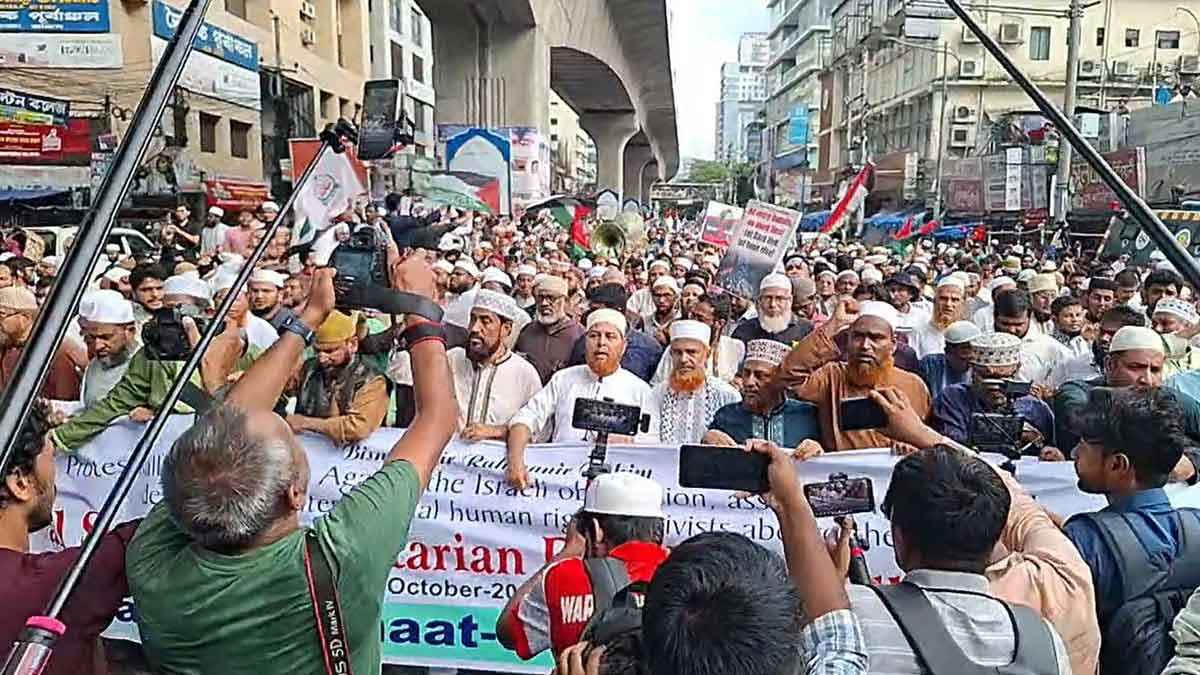 ‘গ্লোবাল সুমুদ ফ্লোটিলা নৌবহরে’ আক্রমণ ও বিশ্বের মানবাধিকার কর্মীদের আটকের প্রতিবাদে বিক্ষোভ মিছিল করেছে বাংলাদেশ জামায়াতে ইসলামী। আজ শুক্রবার (৩ অক্টবর) জুমা শেষে বায়তুল মোকাররমের উত্তর গেট থেকে মিছিল বের করে দলটির নেতাকর্মীরা।