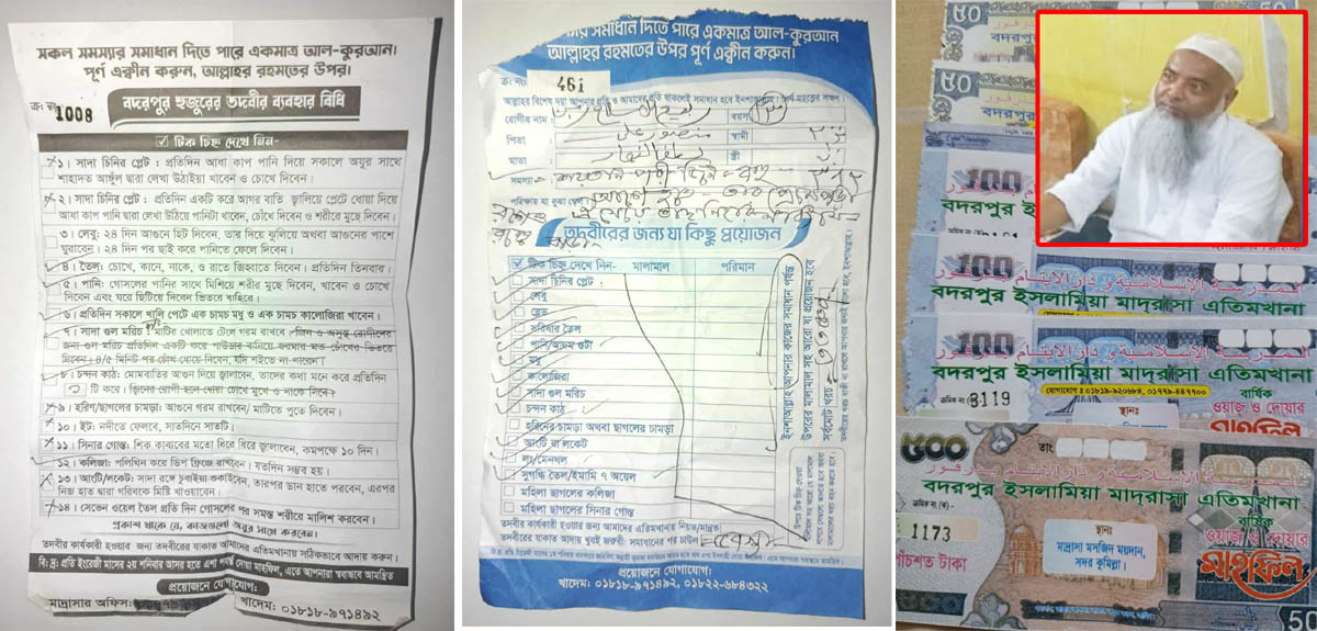 দৈনিক সংবাদ প্রতিদিনের অনুসন্ধানী টিম রোগী সেজে প্রবেশ করলে শুরু হয় ইলিয়াস হুজুরের কথিত “আধ্যাত্মিক চিকিৎসা”। তিনি রোগীকে ভয় দেখিয়ে বলেন— ‘শয়তান, পুরি, জ্বিন ও যাদু টোনায় আক্রান্ত’। এরপর চিকিৎসার নামে দাবি করেন ৩৩ হাজার ৫ শত টাকা, এবং ‘যাদু কাটার রশিদ’ হিসেবে হাতে তুলে দেন নিজস্ব সিলমোহরযুক্ত কাগজ।