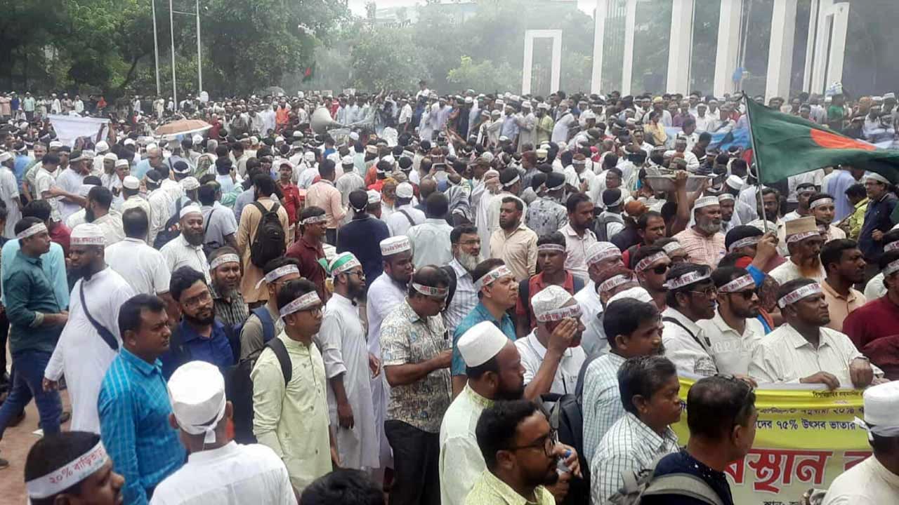 এর আগে গত রোববার প্রেস ক্লাবের সামনে অবস্থান কর্মসূচি চলাকালে পুলিশের সঙ্গে ধস্তাধস্তি ও সাউন্ড গ্রেনেড নিক্ষেপের ঘটনা ঘটে। ওই ঘটনার পর থেকেই শিক্ষকরা সারাদেশে পাঠদান বন্ধ রেখে অনির্দিষ্টকালের কর্মবিরতিতে রয়েছেন। শিক্ষক নেতারা জানিয়েছেন, সরকারের পক্ষ থেকে বাড়িভাড়া ও চিকিৎসা ভাতা বৃদ্ধির প্রজ্ঞাপন এবং শিক্ষা জাতীয়করণের রূপরেখা না পাওয়া পর্যন্ত কর্মসূচি আরও জোরদার করা হবে।
