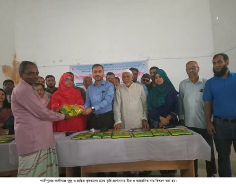২০২৫-২৬ অর্থবছরে রবি মৌসুমে সরিষা, গম ও মুগ ডালের আবাদ ও উৎপাদন বৃদ্ধির লক্ষ্যে গাজীপুরের কালীগঞ্জে ৬৬০ জন ক্ষুদ্র ও প্রান্তিক কৃষকের মাঝে বিনামূল্যে বীজ ও রাসায়নিক সার বিতরণ করা হয়েছে।