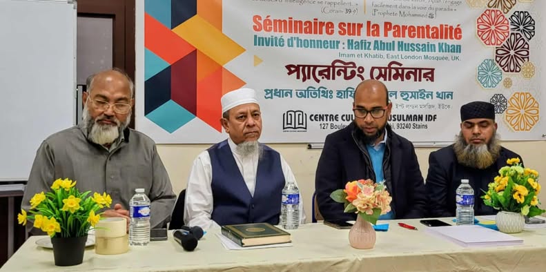 ফ্রান্সের উপকন্ঠ স্থা সিটিতে - স্থা ইসলামিক সেন্টার এর উদ্যোগে রবিবার সেন্টারের বলরুমে অনুষ্টীত হয়েছে প্যারেন্টিং সেমিনার। এতে প্রধান অতিথির বক্তব্য রাখেন ইস্ট লন্ডন মসজিদ এর খতিব হাফিজ আবুল হোসাইন খান। সেন্টারের ইমাম আহমদ উল ইসলাম এর পরিচালনায় ও মাদ্রাসা বিভাগের সভাপতি নুরুল ইসলাম এর সভাপতিত্বে এসময় আলোচনায় অংশ নেন ইসলামিক সেন্টারের সভাপতি সালাহ উদ্দীন, ও পরিচালক জালাল আহমদ ।