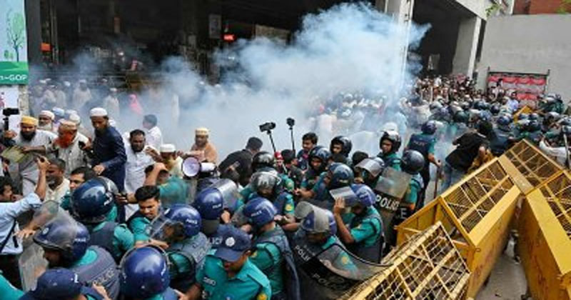 চাকরি জাতীয়করণের দাবিতে সচিবালয় অভিমুখে পদযাত্রা করা ইবতেদায়ি শিক্ষকদের ওপর জলকামান, টিয়ারশেল ও সাউন্ড গ্রেনেড নিক্ষেপ করেছে পুলিশ। বুধবার (২৯ অক্টোবর) জাতীয় প্রেস ক্লাবের সামনে এ ঘটনা ঘটেছে। এ সময় আন্দোলনকারীদের লাঠিপেটা করে পুলিশ। এতে বেশ কয়েকজন আহত হয়েছেন।