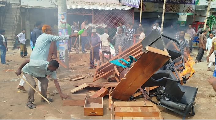 মেহেরপুর-২ (গাংনী) আসনের বিএনপির মনোনীত প্রার্থী আমজাদ হোসেনের অফিসে হামলা চালিয়েছে মনোনয়ন বঞ্চিত জেলা বিএনপির সভাপতি জাভেদ মাসুদ মিল্টন সমর্থক নেতাকর্মী। আজ মঙ্গলবার সকাল ১১ টা থেকে দফায় দফায় এই হামলার ঘটনা ঘটে। বর্তমানে গাংনী উপজেলা শহরের দোকানপাট বন্ধ হয়ে গেছে। শহরে কয়েক হাজার নেতাকর্মী রাস্তায় দাড়িয়ে বিক্ষোভ করছেন। উপস্থিত আছেন গাংনী উপজেলা বিএনপির সভাপতি আলফাজ উদ্দিন কালু, সাধারণ সম্পাদক আব্দুল আওয়াল, পৌর বিএনপির সভাপতি মকবুল হোসেন মেঘলা, সাধারণ সম্পাদক সাইদুল ইসলাম। এখন দুই গ্রুপের লোকজন চরম উত্তেজনা।