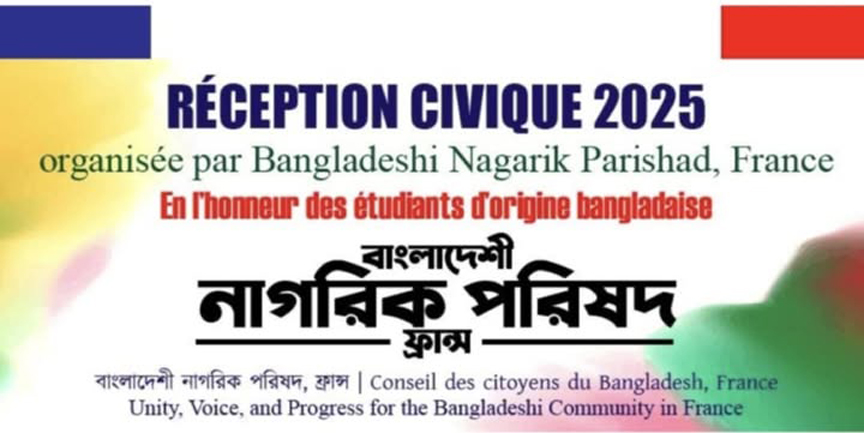 ফ্রান্সে বাংলাদেশী নাগরিক পরিষদের উদ্যোগে অনুষ্ঠিত হতে যাচ্ছে মেধাবী শিক্ষার্থী পুরস্কার বিতরণ অনুষ্ঠান-২০২৫।