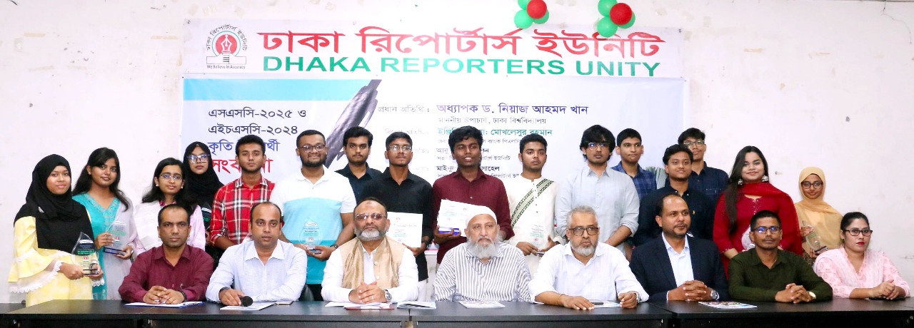 ঢাকা রিপোর্টার্স ইউনিটি’র (ডিআরইউ) সদস্য সন্তানদের মধ্যে ২০২৫ সালের মাধ্যমিক স্কুল সার্টিফিকেট (এসএসসি) এবং ২০২৪ সালের উচ্চ মাধ্যমিক স্কুল সার্টিফিকেট (এইচএসসি) পরীক্ষায় জিপিএ -৫ প্রাপ্ত কৃতী শিক্ষার্থীদের সংবর্ধনা এবং বৃত্তি প্রদান করা হয়েছে। আজ মঙ্গলবার (১১ নভেম্বর) বিকেলে সংগঠনের শফিকুল কবির মিলনায়তনে এ সংবর্ধনা দেওয়া হয়।