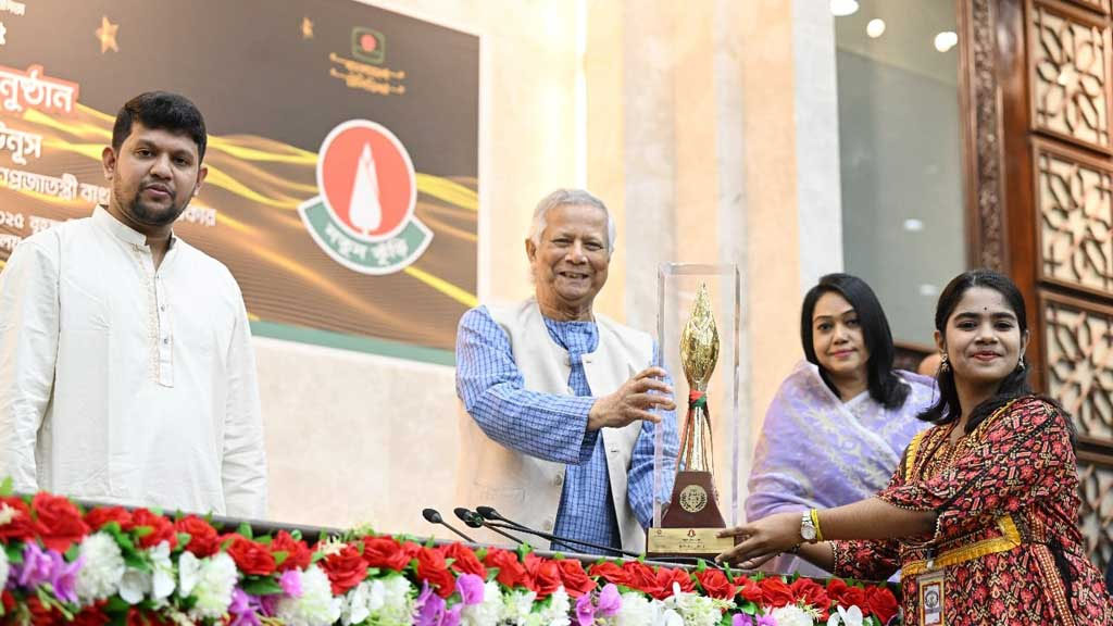 আজ প্রধান উপদেষ্টা ‘ক’ ও ‘খ’ গ্রুপের সেরা দুই বিজয়ীর হাতে পুরস্কার তুলে দেন। ‘ক’ গ্রুপে টাঙ্গাইল জেলার প্রেয়সী চক্রবর্তী এবং ‘খ’ গ্রুপে সুনামগঞ্জ জেলার শুভ মিতা তালুকদার চ্যাম্পিয়ন হয়। তারা প্রত্যেকে একটি ক্রেস্ট ও তিন লাখ টাকার চেক গ্রহণ করে।