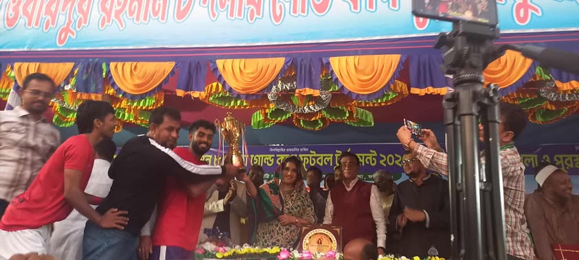 ফরিদপুরের সালথায় মরহুম কেএম ওবায়দুর রহমান ৮দলীয় গোল্ডকাপ ফুটবল টুনামেন্টের ফাইনাল খেলা ও পুরস্কার বিতরণ অনুষ্ঠিত হয়েছে।