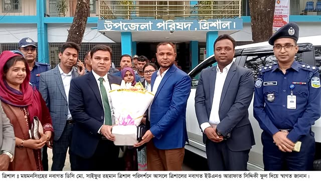 জেলা প্রশাসক মো. সাইফুর রহমান উপজেলা পরিষদে পৌঁছালে তাঁকে স্বাগত জানান উপজেলা প্রশাসনের ঊর্ধ্বতন কর্মকর্তাবৃন্দ। এ সময় উপস্থিত ছিলেন, ত্রিশাল উপজেলার নবাগত উপজেলা নির্বাহী অফিসার (ইউএনও) আরাফাত সিদ্দিকী, সহকারী কমিশনার (ভূমি) মাহবুবুর রহমান, ত্রিশাল সার্কেলের সহকারী পুলিশ সুপার হাসান ইসরাফিল, ত্রিশাল থানার ভারপ্রাপ্ত কর্মকর্তা (ওসি) মুনসুর আহাম্মদ, উপজেলা প্রকল্প বাস্তবায়ন কর্মকর্তা মোহাম্মদ শহিদ উল্লাহ প্রমূখ।