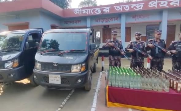নালিতাবাড়ীতে বিজিবির অভিযানে ভারতীয় ৪৪০ বোতল মদসহ পিকআপ ভ্যান আটক