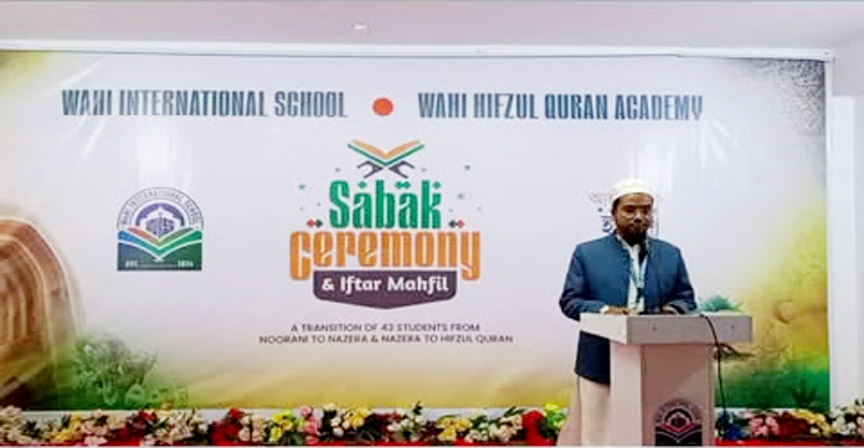 কুড়িগ্রামে ওহী ইন্টারন্যাশনাল স্কুল-এর উদ্যোগে ৪৩ জন ক্ষুদে শিক্ষার্থীর আল-কুরআন শিক্ষার পথে একধাপ এগিয়ে যাওয়ার উপলক্ষে সবক অনুষ্ঠান ও ইফতার মাহফিল অনুষ্ঠিত হয়েছে। শনিবার বিকেল তিনটায় কলেজ মোড়স্থ গ্র্যান্ড এসেম্বলি হলে (আকবরিয়া সুইটসের উপর তলায়) আয়োজিত এ অনুষ্ঠানে শিক্ষার্থী ও অভিভাবকদের উপস্থিতিতে পুরো হলরুম মুখরিত হয়ে ওঠে।