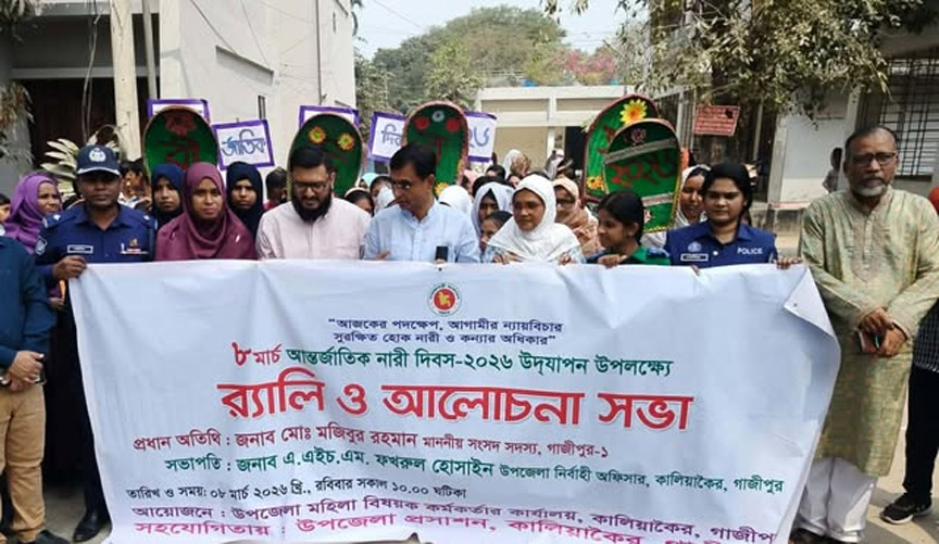 গাজীপুরের কালিয়াকৈরে যথাযোগ্য মর্যাদায় আন্তর্জাতিক নারী দিবস পালিত হয়েছে। দিবসটি উপলক্ষে র্যালি ও আলোচনা সভার আয়োজন করা হয়।